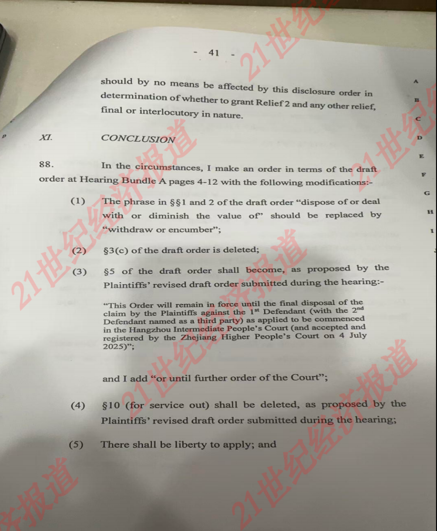 起诉书显示,香港高等法院在审阅原诉传票、原告及律师确认书、原告承诺书等证据资料后,发出了临时禁止令。