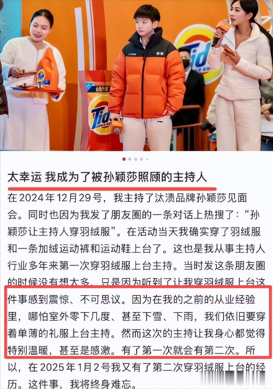手机上的新浪——孙颖莎曾让主持人穿羽绒服采访